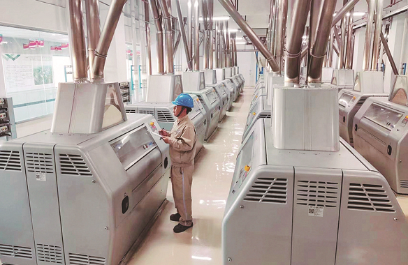 在面粉生产车间,技术员正在巡检